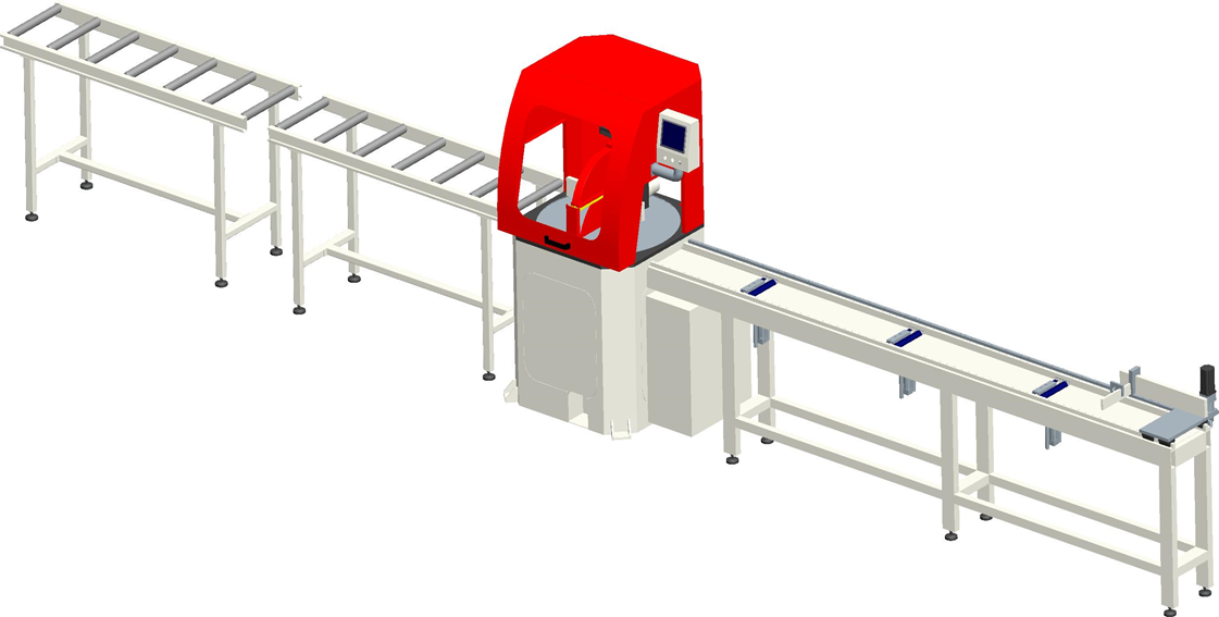 7、機械特性: 自動送料,自動定位,自動轉(zhuǎn)角度,自動噴油,自動鋸切自動送料行程4000mm ,采用伺服馬達驅(qū)動精密齒輪齒條傳動,精確度高,采用NC控制器,PLC控制穩(wěn)定性高,電器元件均采用知名品牌,主機夾具為1組上壓及2組側壓壓料;送料臺夾具為1組側壓壓料(或氣動夾爪機構),適合不規(guī)則材料鋸切及多支材料同時鋸切, 加工過程設備會自動無料感應,當材料加工完成后設備自動停機,采用布袋式吸塵器,設計雙吸塵口吸屑,可吸取大部分廢屑設備有計數(shù)功能,方便統(tǒng)計數(shù)量。
