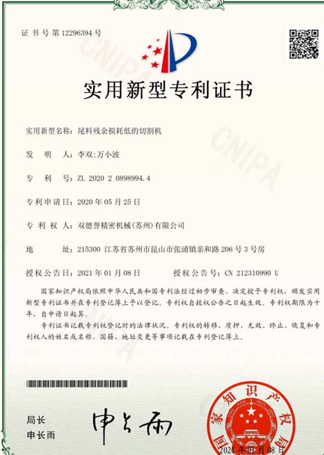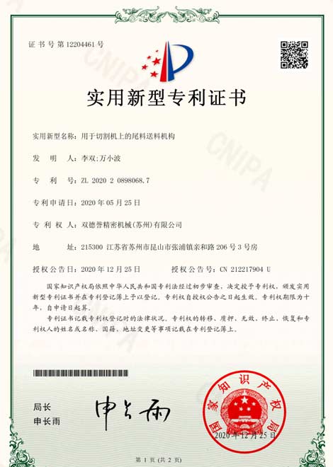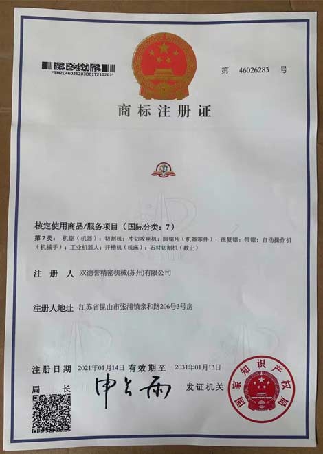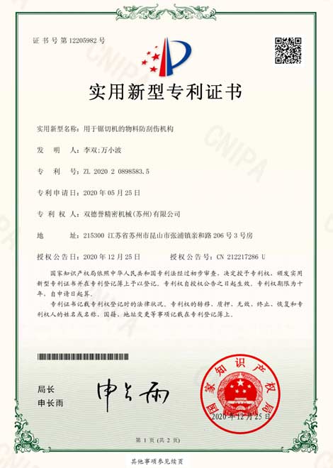 鋸切設(shè)備-氣動推進版操作系統(tǒng)-雙德譽榮譽資質(zhì)