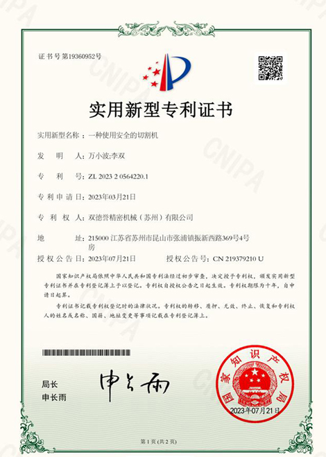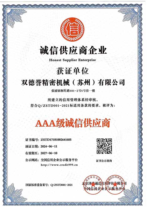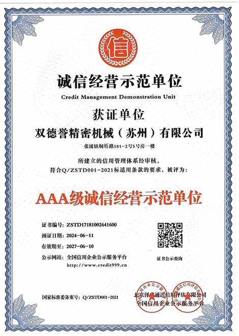 誠(chéng)信經(jīng)營(yíng)示范單位-雙德譽(yù)精密機(jī)械(蘇州)有限公司