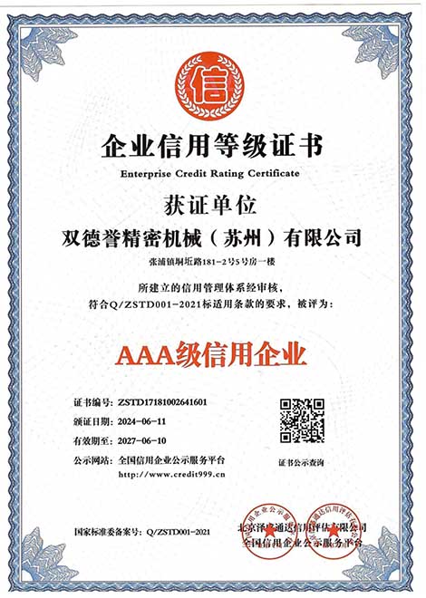 企業(yè)信用等級(jí)證書(shū)-雙德譽(yù)精密機(jī)械(蘇州)有限公司