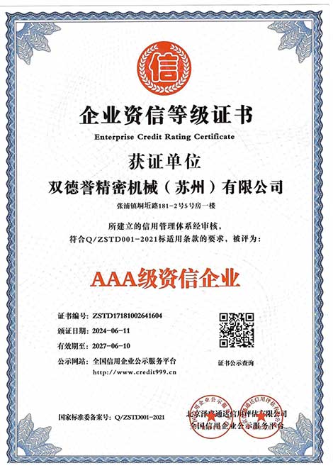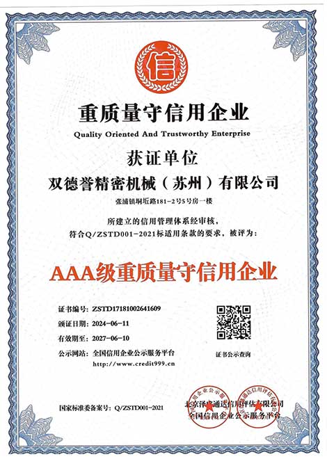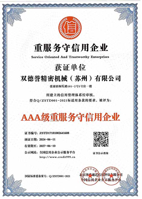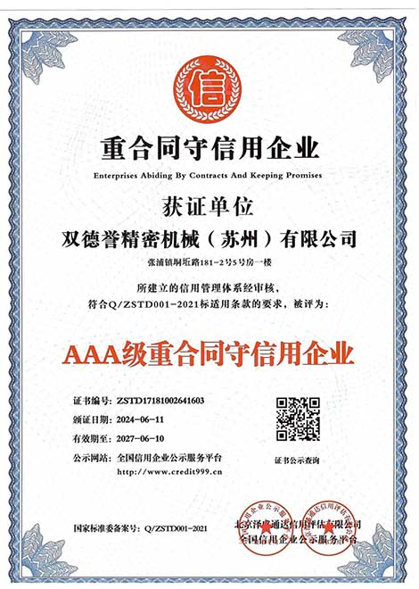 重服務(wù)守信用企業(yè)-雙德譽(yù)精密機(jī)械(蘇州)有限公司