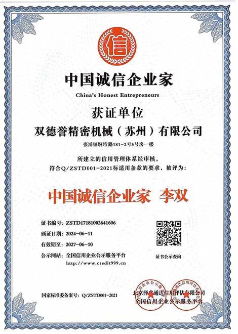 中國(guó)誠(chéng)信企業(yè)家-雙德譽(yù)精密機(jī)械(蘇州)有限公司